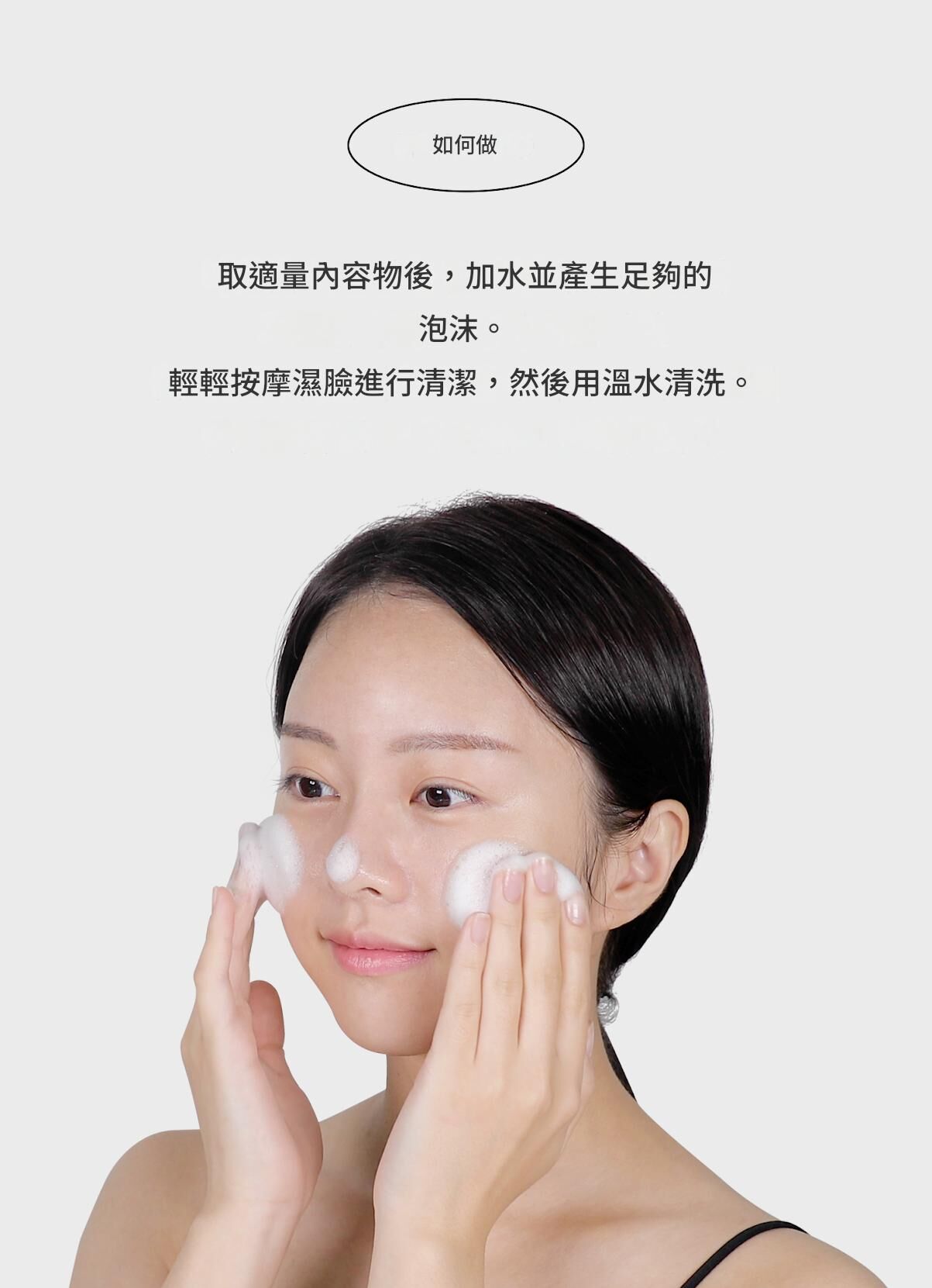 2. 取適量潔面乳於濕潤的臉部,輕輕按摩。