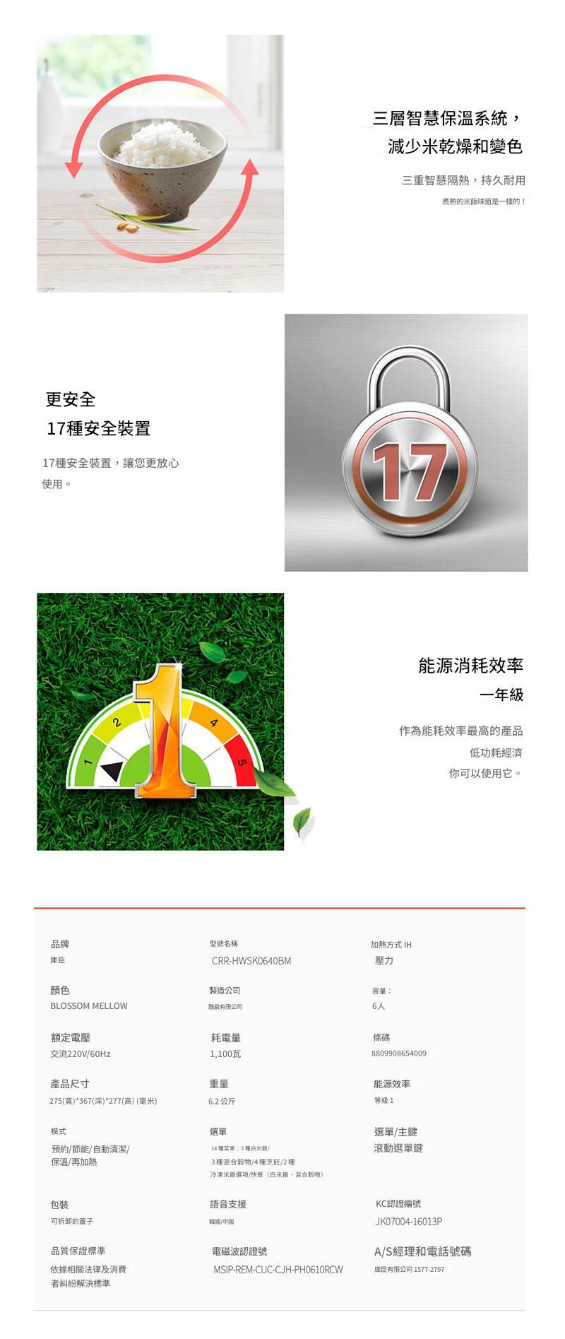 [CUCHEN] Midam米壜紅外線感應式六人份電鍋