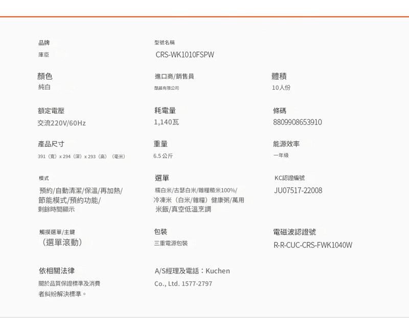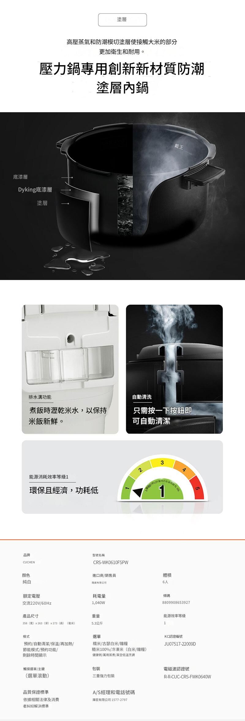 [CUCHEN]The Fit 雙壓力實用型 標準壓力電子鍋 6人/10人