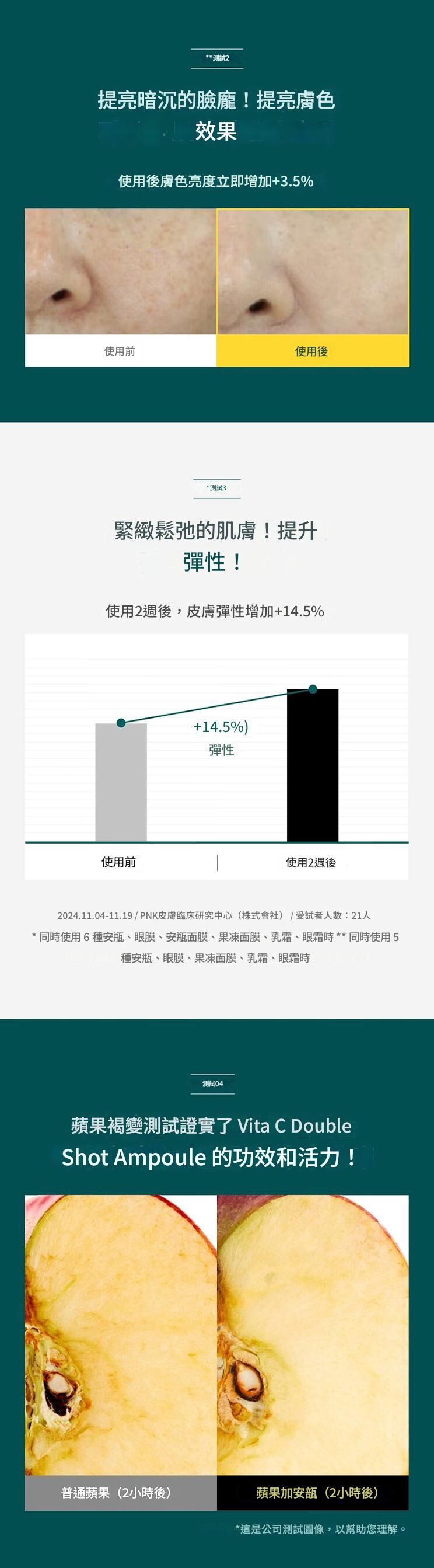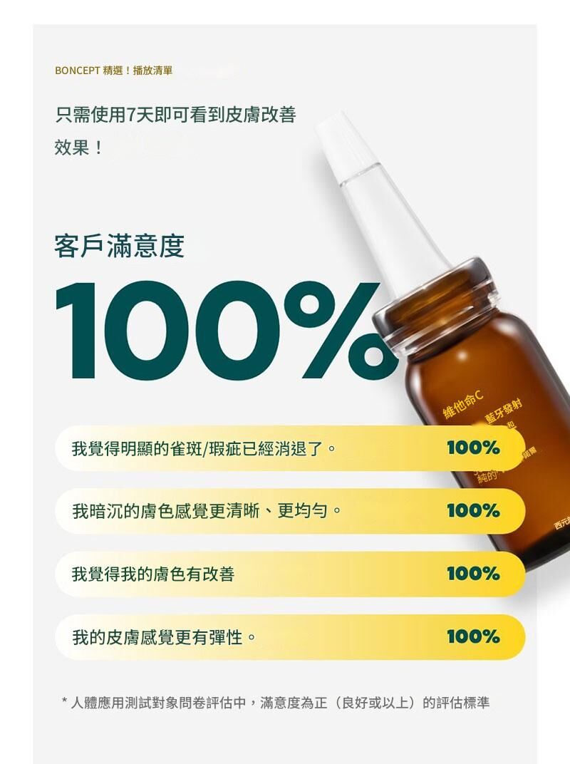 提亮膚色、淡化黑斑、均勻膚色 同時改善皮膚彈性和清晰度