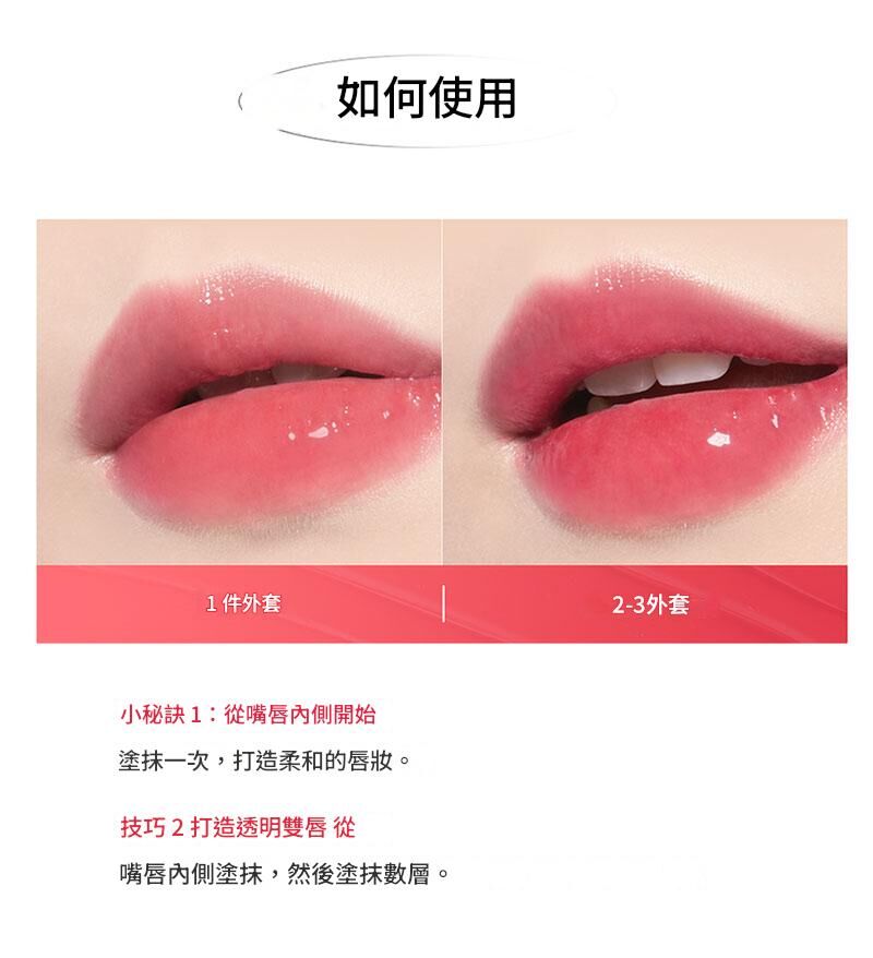 建議從唇部內側開始塗抹一次若想加強顯色效果可多次疊擦