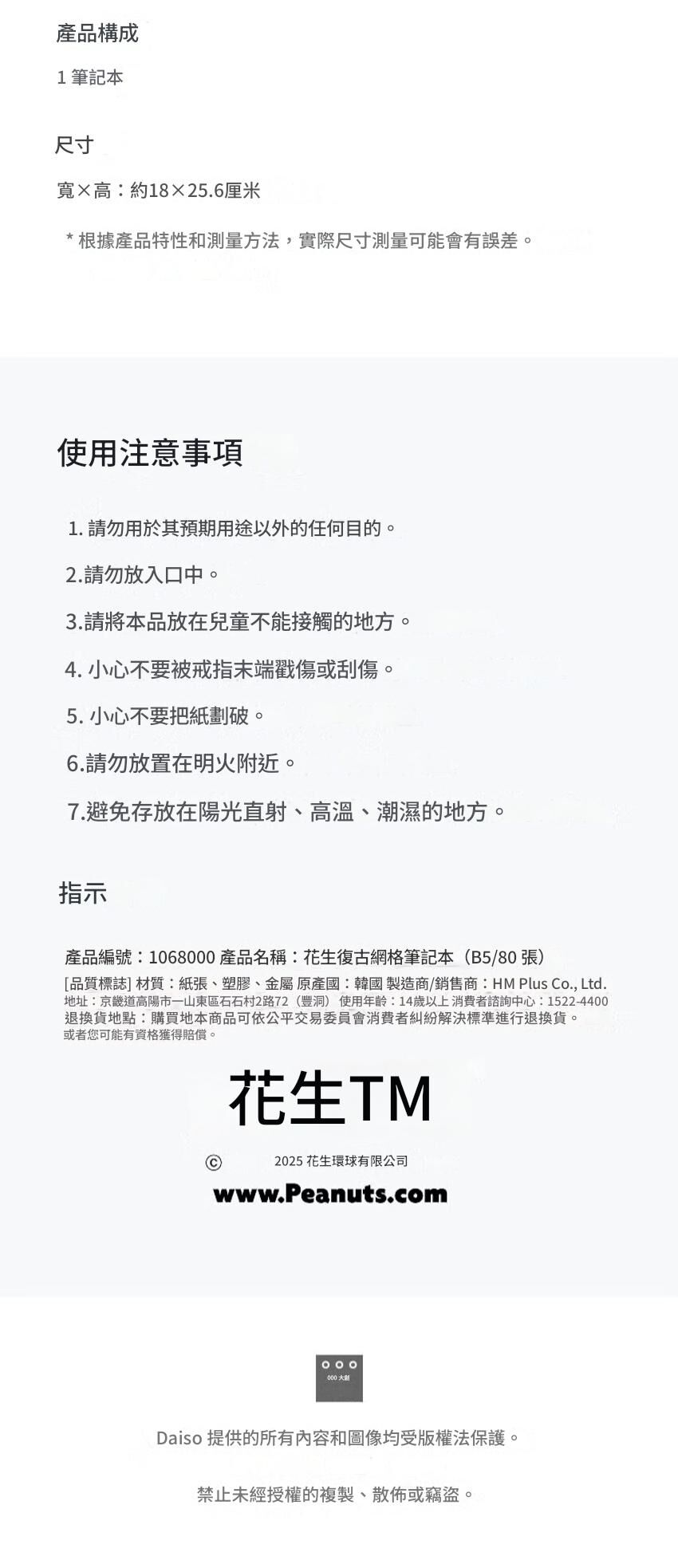 [DAISO] Peanuts 復古方格筆記本 B5 80頁