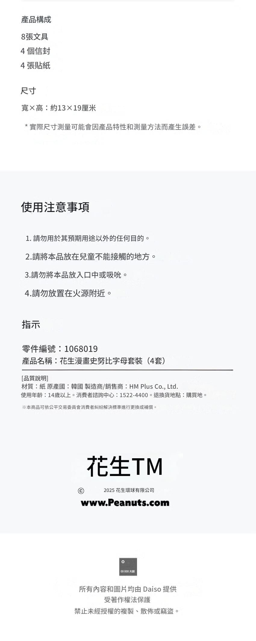 [DAISO] Peanuts漫畫史努比復古信紙本 4 件套組
