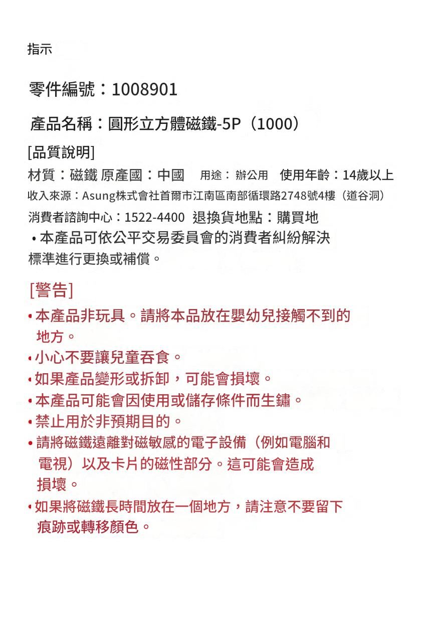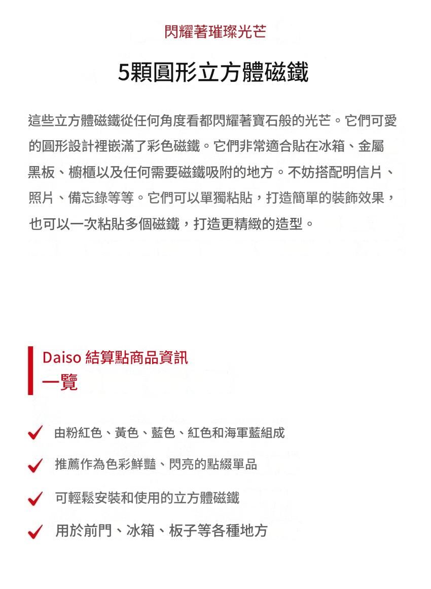 [DAISO] 圓形立方體磁鐵 5P