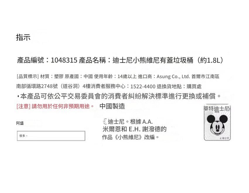[DAISO] 迪士尼 小熊維尼 蓋式垃圾桶 1.8公升