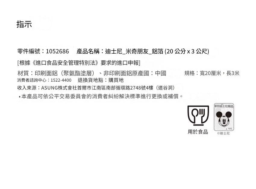 [DAISO] 迪士尼 米奇好朋友 鋁箔紙 20cm x 3m