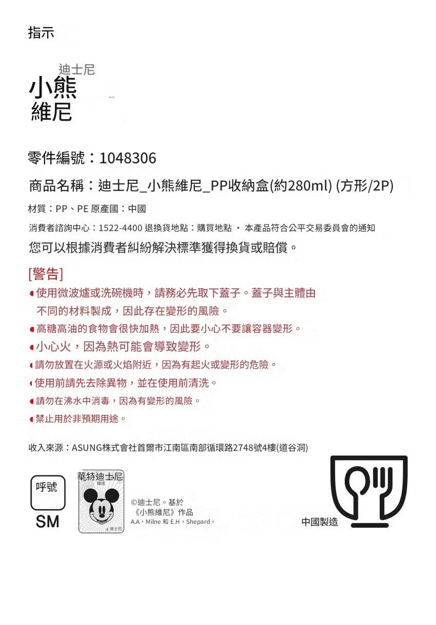 [DAISO] 迪士尼小熊維尼方形收納盒 280ml (2入)