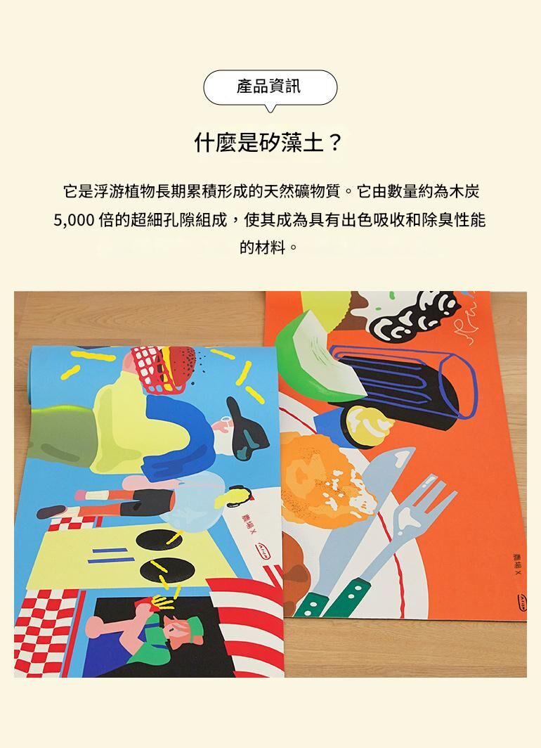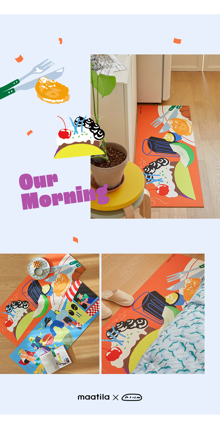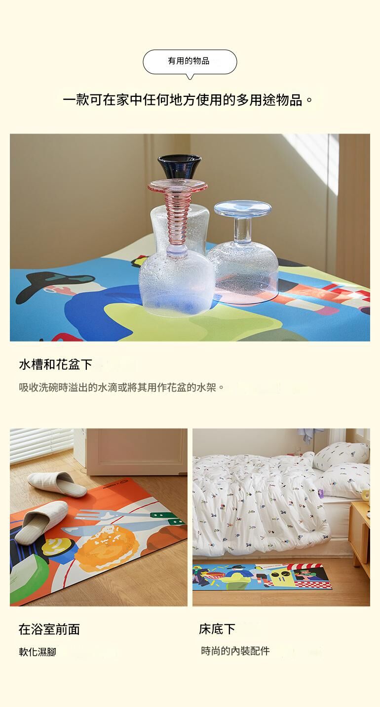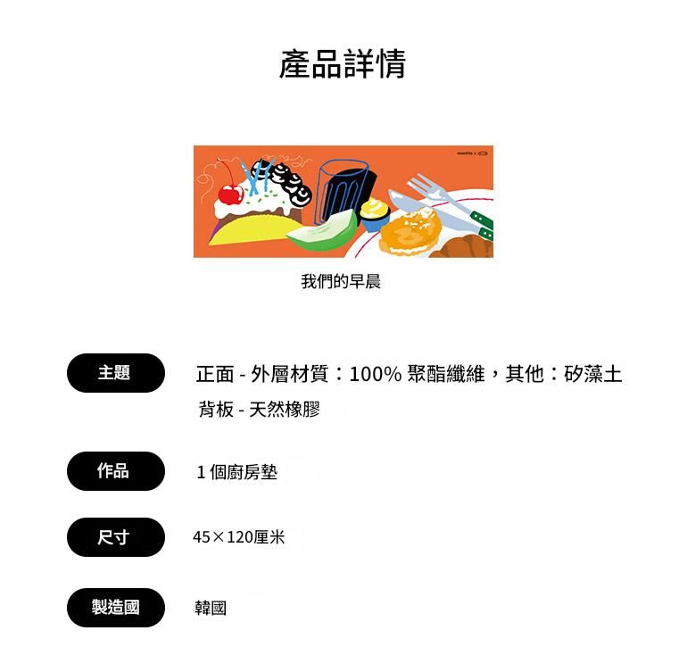 [maatila] Hyun-Jung Ahn聯名 吸1秒吸水柔軟矽藻土浴室廚房墊-我們的早晨(45X120)