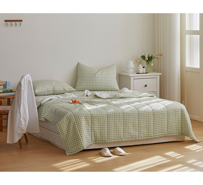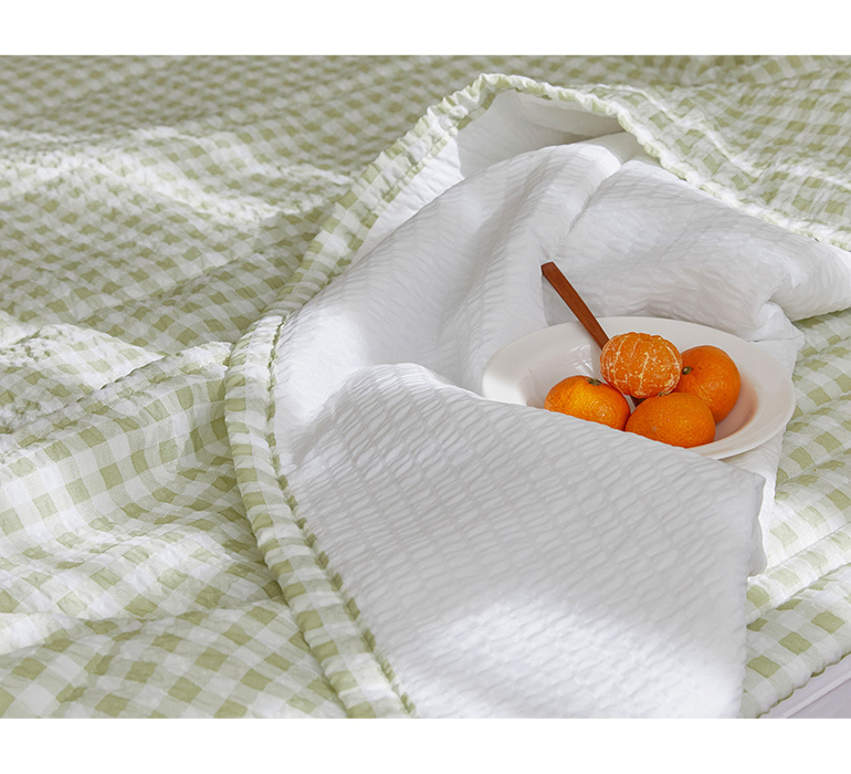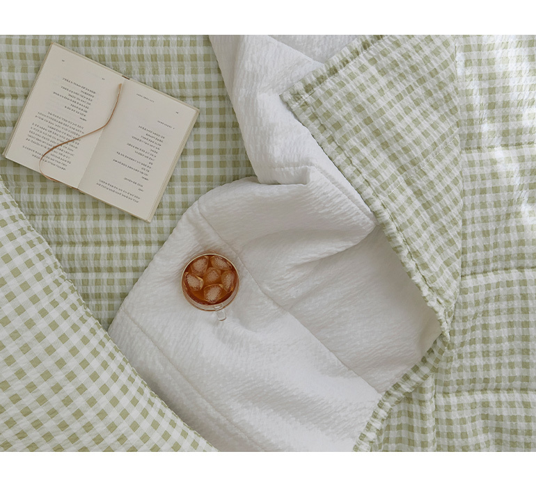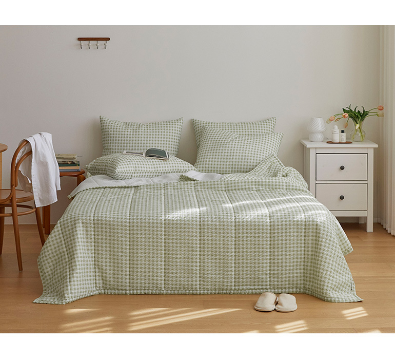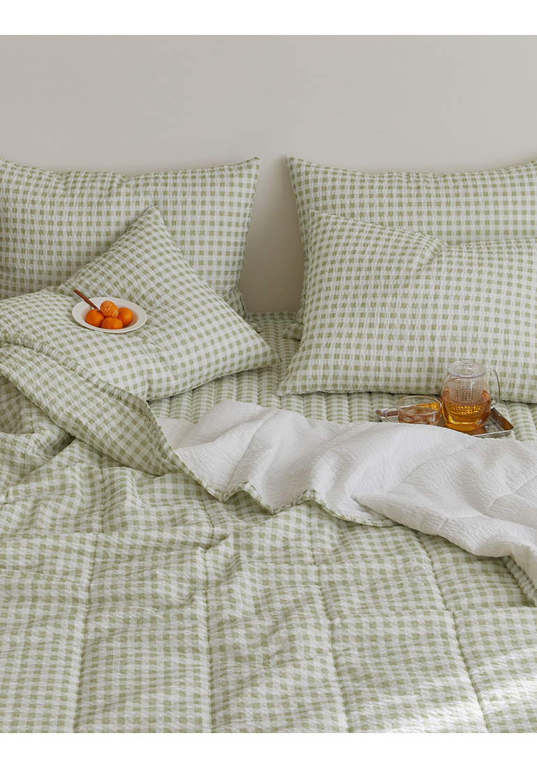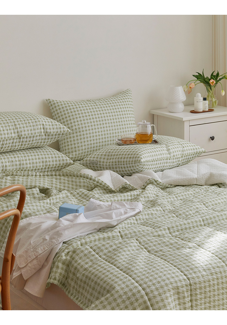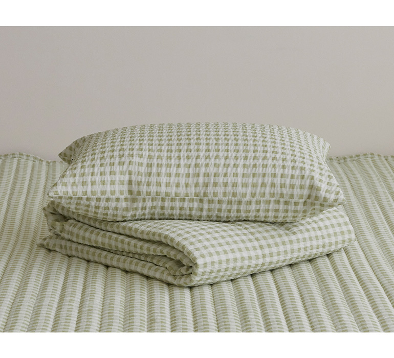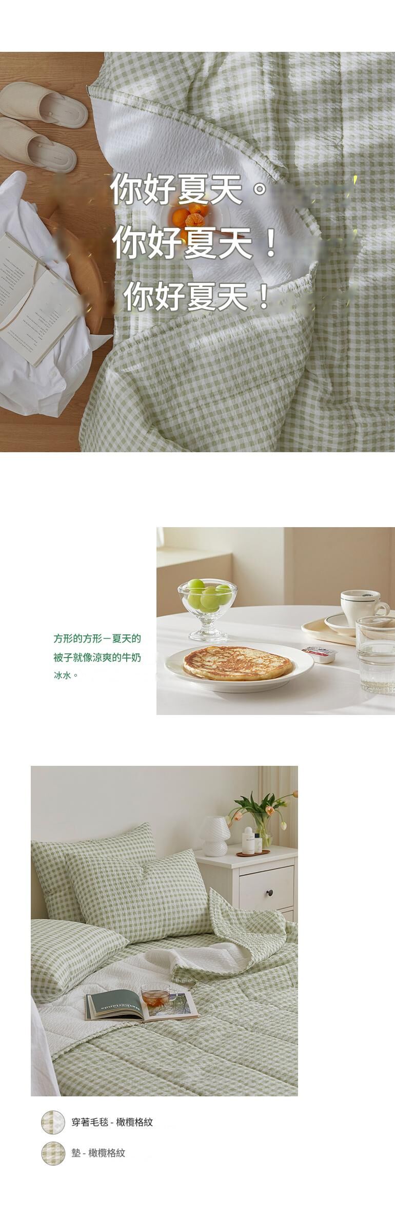 [maatila] 清爽的Dear Summer泡泡紗 夏季寢具-橄欖綠格紋(SS/Q/K)