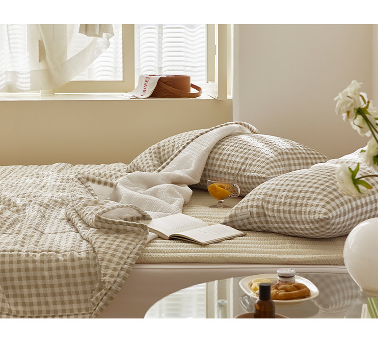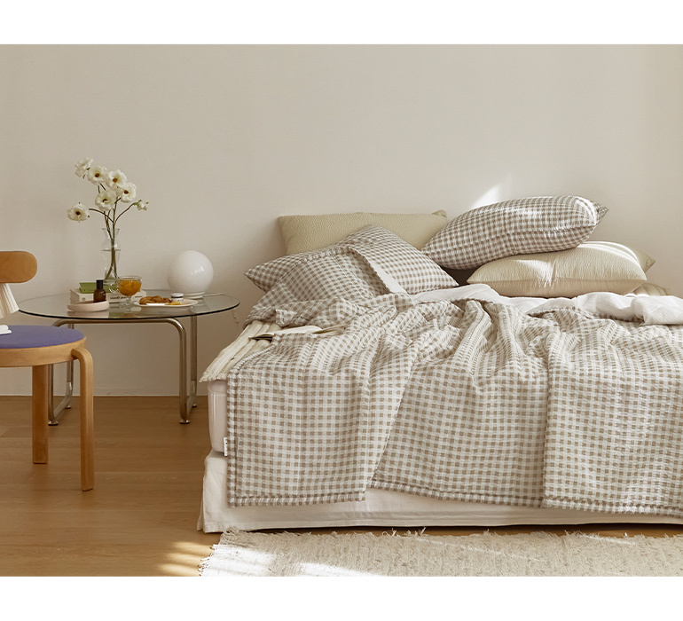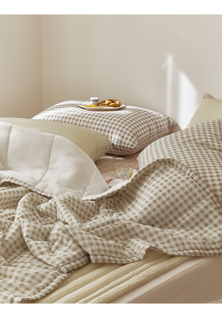 [maatila] 清爽的Dear Summer泡泡紗 夏季寢具-燕麥格紋(SS/Q/K)