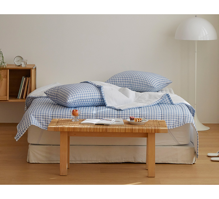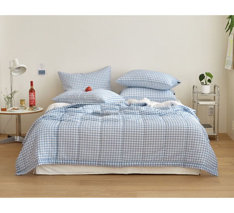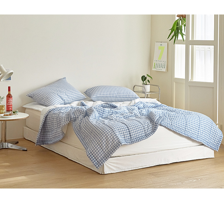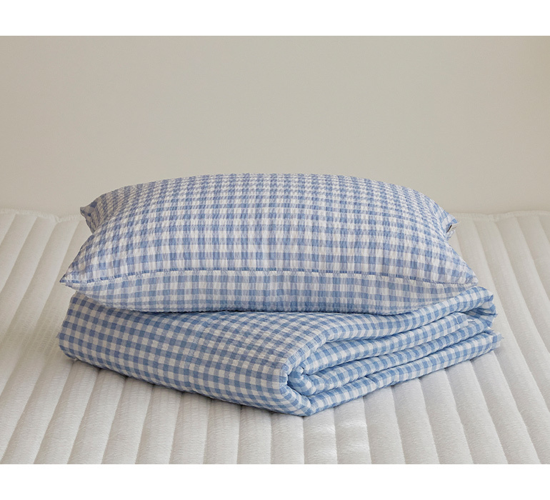 [maatila] 清爽的Dear Summer泡泡紗 夏季寢具-藍色格紋(SS/Q/K)