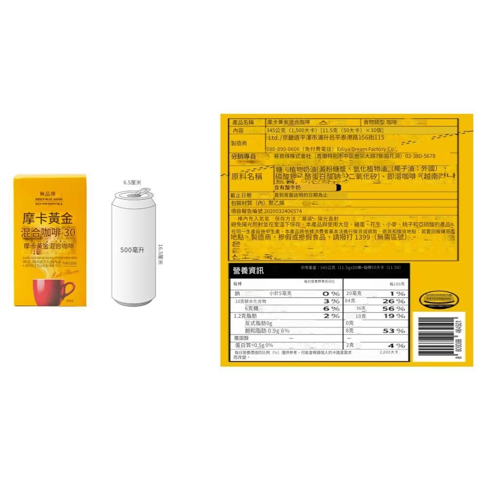 No Brand 摩卡金牌三合一咖啡 30 包