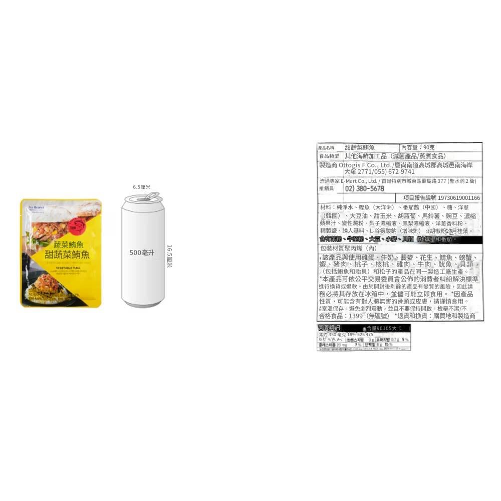 No Brand 甜蔬菜鮪魚即食調味醬包 90克
