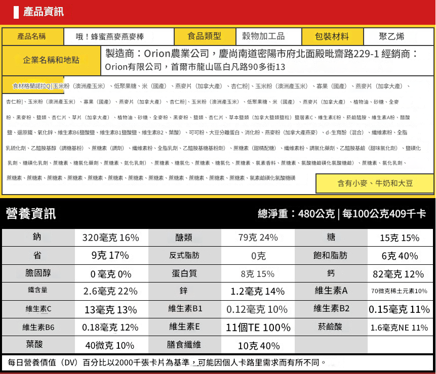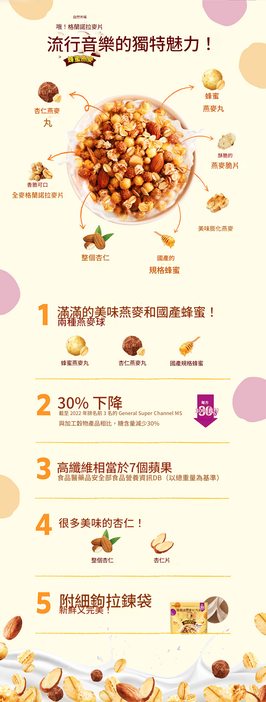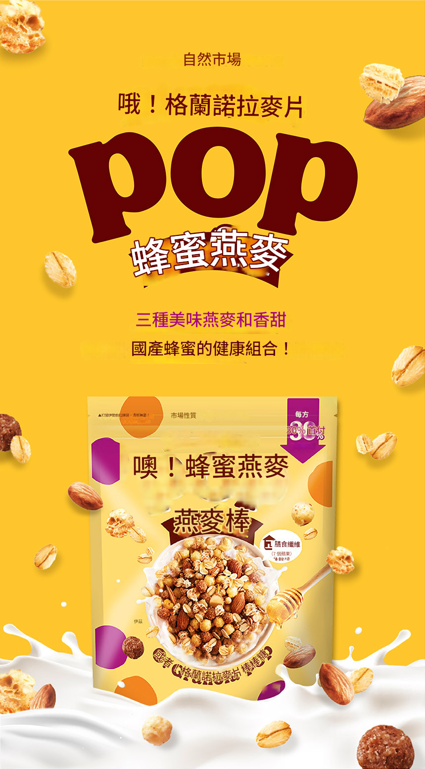[Orion] 好麗友-Pop爆款格蘭諾拉麥片 蜂蜜燕麥 480g x 2包