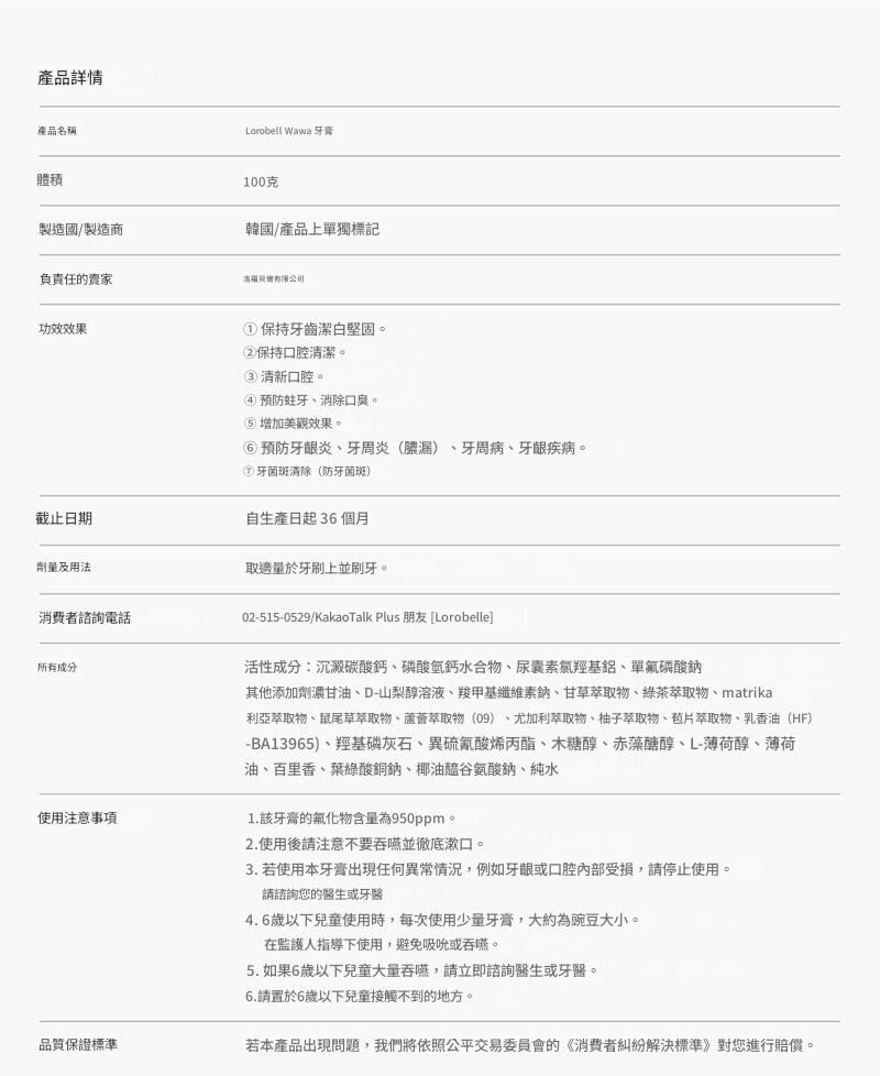 [ROROBELL]WAWA牙膏100克 x 5支