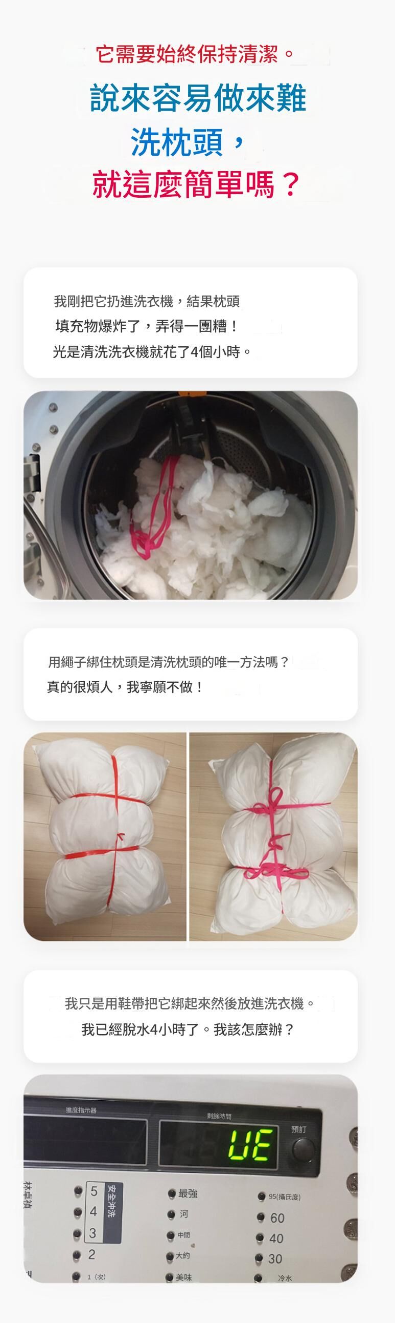 避免脫水錯誤:有助於減少洗衣機在脫水時可能發生的錯誤,保護洗衣機和枕頭。