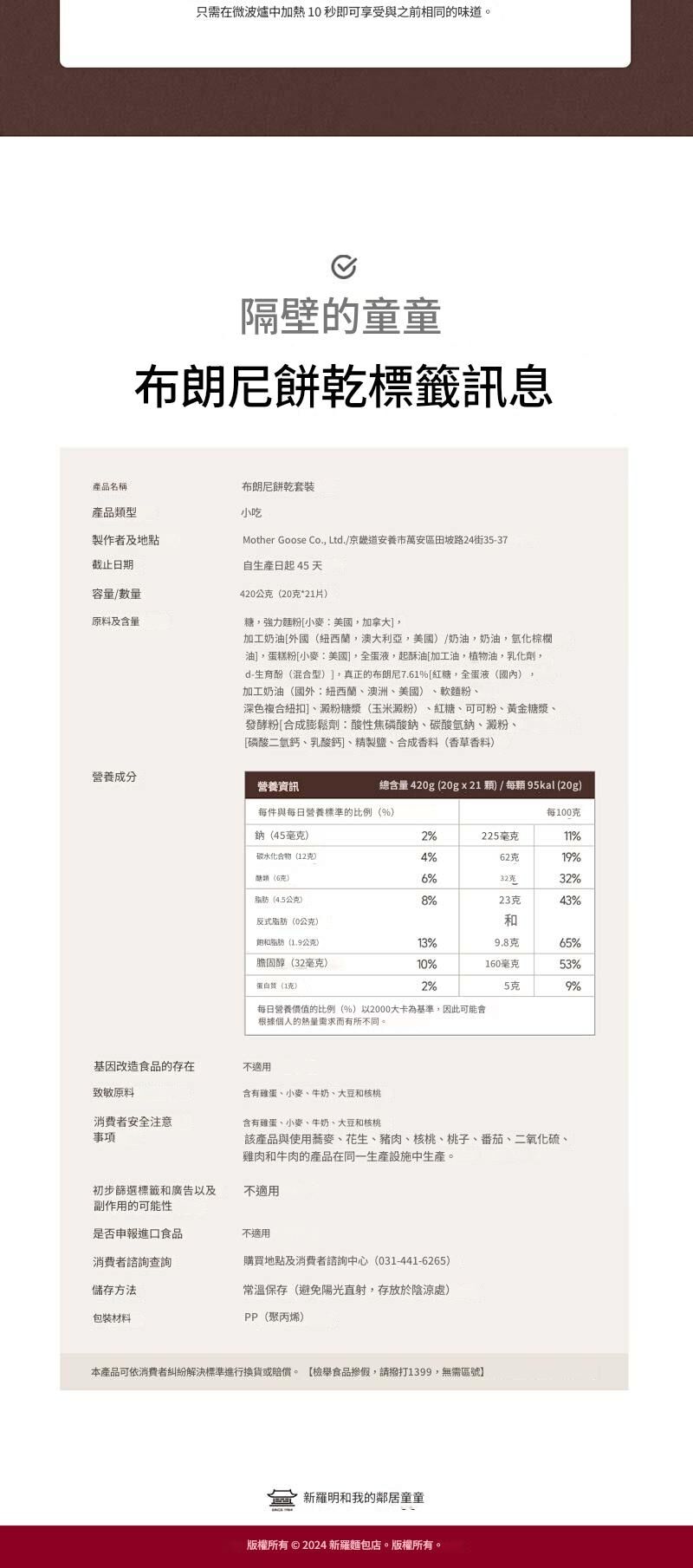 產品名稱為「신라명과이웃집동동이브라우니쿠키」(新羅名菓鄰家咚咚布朗尼餅乾)